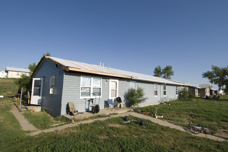 We recently met with the Cheyenne River Housing Authority, the tribal office responsible for managing federal housing programs on the reservation. It was founded on this reservation in 1963, and is funded by the U.S. Department for Housing and Urban Development (HUD), which is often the scapegoat for the poor design and conditions of housing here. Until the 1980’s, the Housing Authority had little control over its designs, and the mandated HUD designs were of poor quality. While the Housing Authority has historically been the main provider of new housing on the reservation, there are other housing organizations that have built similar designs with similar construction materials and techniques. In general, these homes were not designed to withstand the harsh climate extremes. While it would be easy to blame the Housing Authority, HUD, and the other providers for substandard housing or maintenance, we have also seen that the politics of subsidized housing are not that simple.